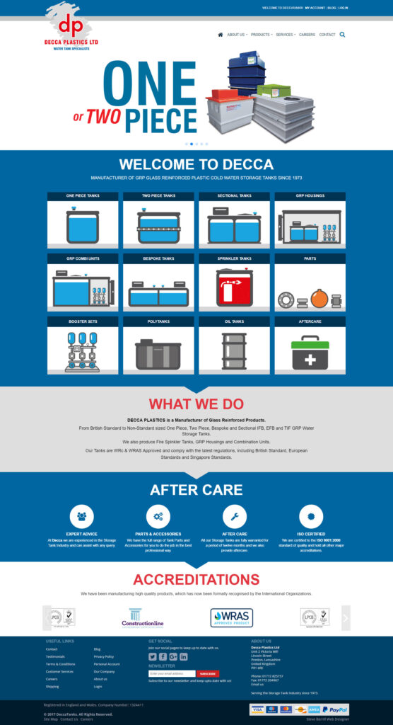 Magento website design for water storage tank company in Preston Lancashire deccatanks.co.uk