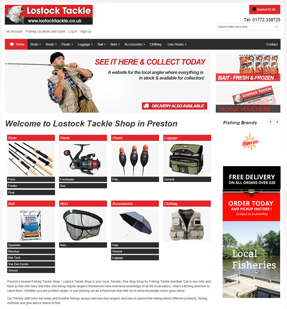 Lostock Tackle are a fishing tackle shop in Preston, the website has been designed and developed int he Magento e commerce platform. The site is also responsive so that it can provide a user friendly version of the website to mobile, tablet, desktop etc